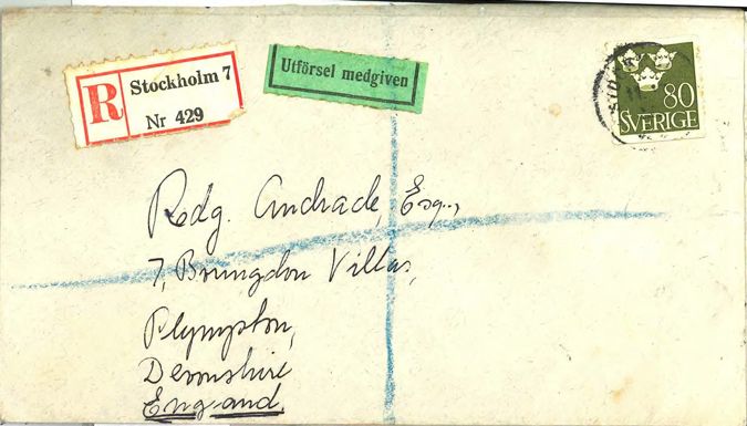 | Frim Sverige: Stpl. 1928-49 F226-392 | Brev o dokument: Försändelser 1938-1970 |