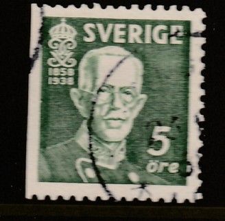 GUSTAV V 80 ÅR 1938 - F.266B 3-SIDIG TANDNING |
