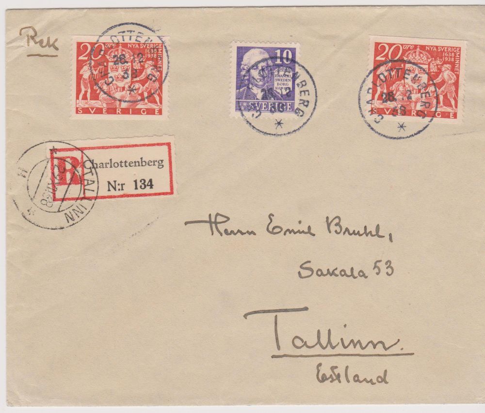 Rekbrev från Charlottenberg 28.12.38 till Estland |