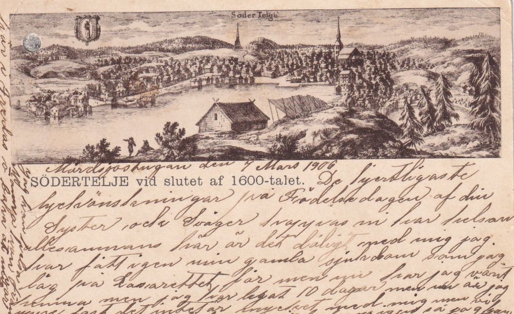Skadat, Tecknat kort Södertelje vid slutet av...Se texttillägg