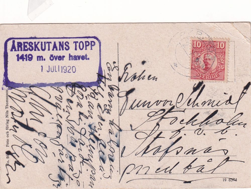 Åreskutans Topp var 1419 m över havet 1/7 1920 |