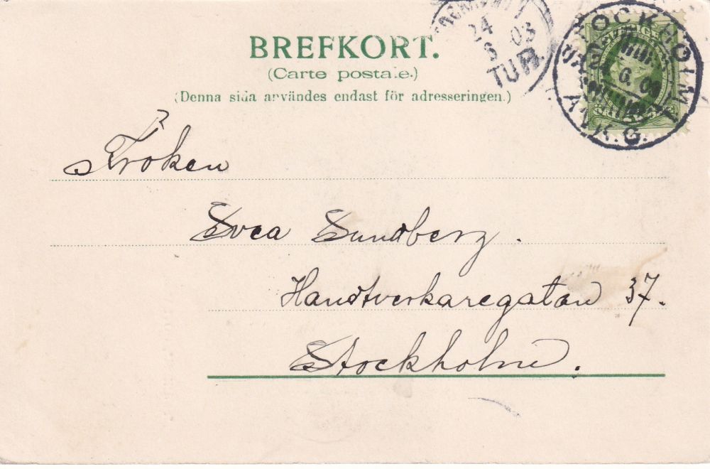 Till Stockholm och ankomststämlats på Julafton Stockholm på Oscar den 24/6 04. Även en TUR stämpel Se bilder