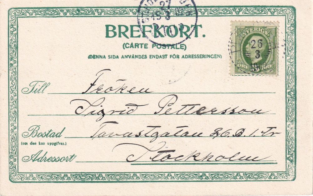 F.W.H.& Co. nr 138 Järnväg t Stockholm 26/3 06..Se Texttillägg |