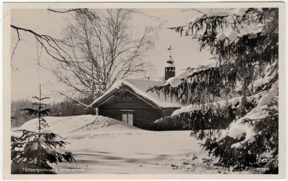 Tällberg stuga på vintern (Förlag: Sörlin & co, Rättvik) stpl Vasaloppet 1950 |