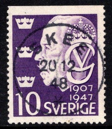 376Bu Skee. GV regentjubileum. 10 öre violett tresida i LYX. O-län |