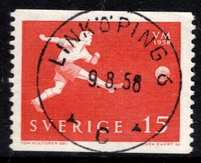 492A Linköping 6. Fotbolls-VM 1958. 15 öre röd med LYX-stämpel. E-län |