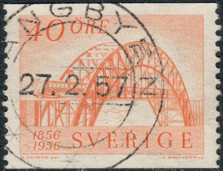 40 öre SJ 100 år MÅNGBYÅN 1957-02-27 praktstämpel (Nst 58v)Porto tillkommer med 22 kr.