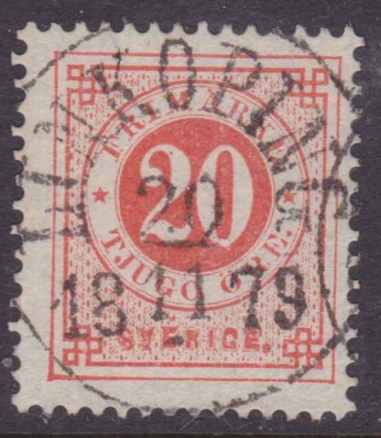 F33 20 öre T13, Linköping 20.11 1879 prakt |