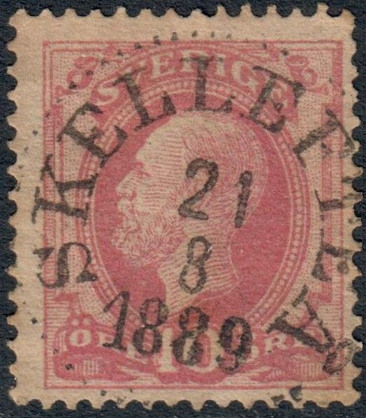 10 öre Oscar boktryck, posthorn SKELLEFTEÅ 1889-08-21 praktstämpel (Nst14-1)Porto tillkommer med 22 kr.
