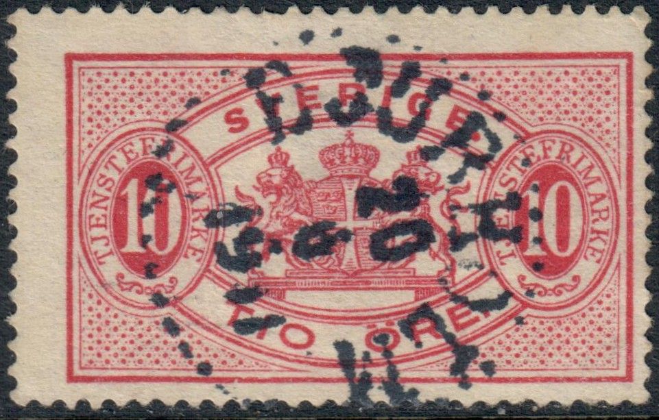 10 öre Stora tjänste typ I BJURHOLM 1911-06-20 sidvänd stämpel (Nst29)Porto tillkommer med 22 kr.