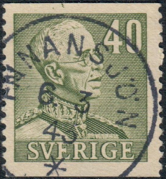 40 öre Gustaf V profil h INNANSJÖN 1943-03-06 praktstämpel (Nst 59b)Porto tillkommer med 22 kr.