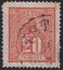 F 16 Liggande lejon, 20 öre röd, stpl YST(AD), snedcentr, ktt, luckfyllare