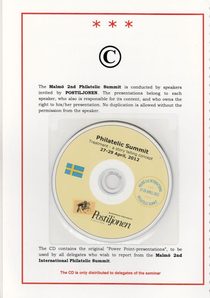 Malmö 2nd Int. Philatelic Summit 2012, book and CD