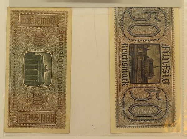 "Sedlar 20+50 Tyska Reichmark 30-40 talet ""nyskick"""