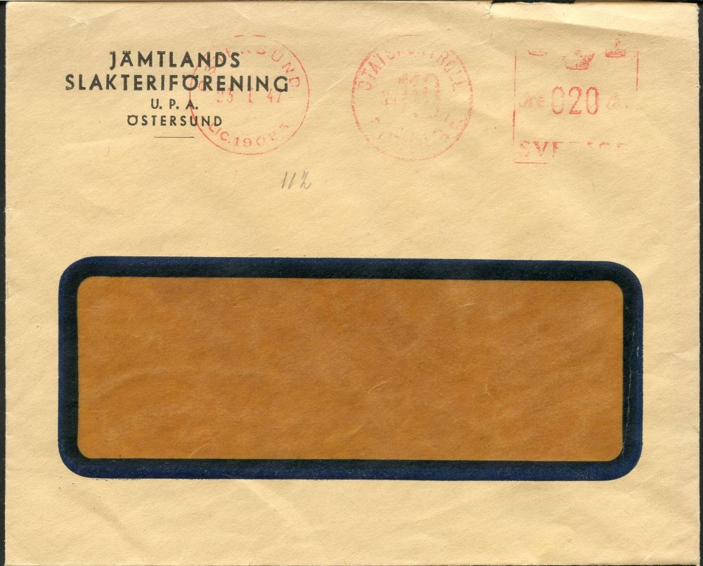 ÖSTERSUND 23.1.1947. Frankostämpel på firmakuvert. |