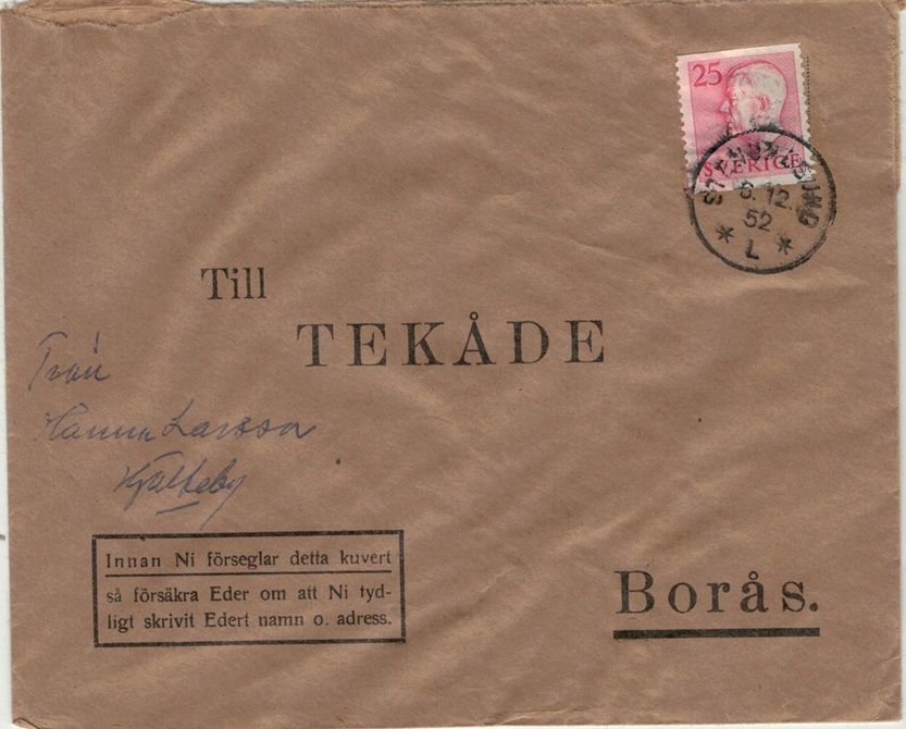 | Stämplar: Bohuslän | Brev o dokument: Försändelser 1938-1970 |