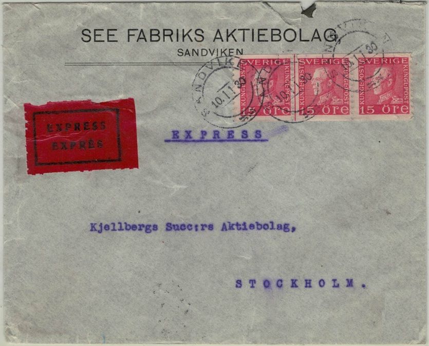 Sandviken NSt 58p på EXPRESS-brev 10.11.30 |