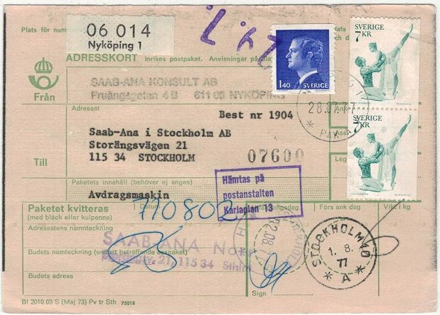 Nyköping 1 NSt 61cPAK A på adresskort 28.07.77 SVÅR |