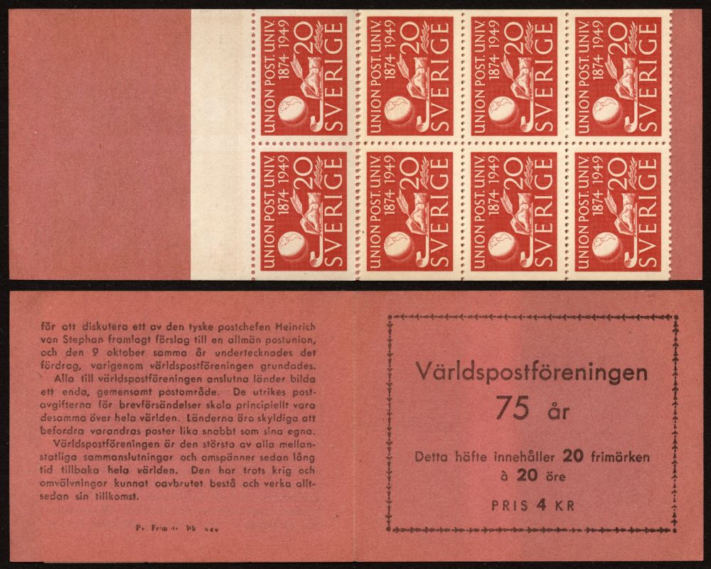 Sverige 1949 - Världspostföreningen 75-årsjubileum, häfte |