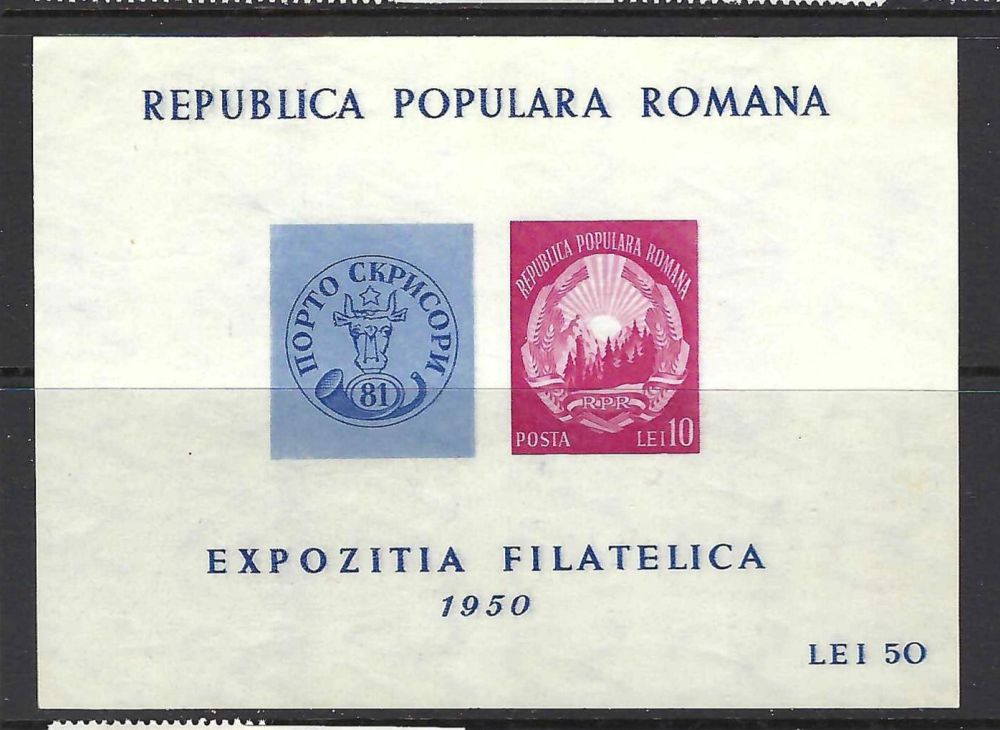 Rumänien Mi nr Block 39* ostämplat 1950 |