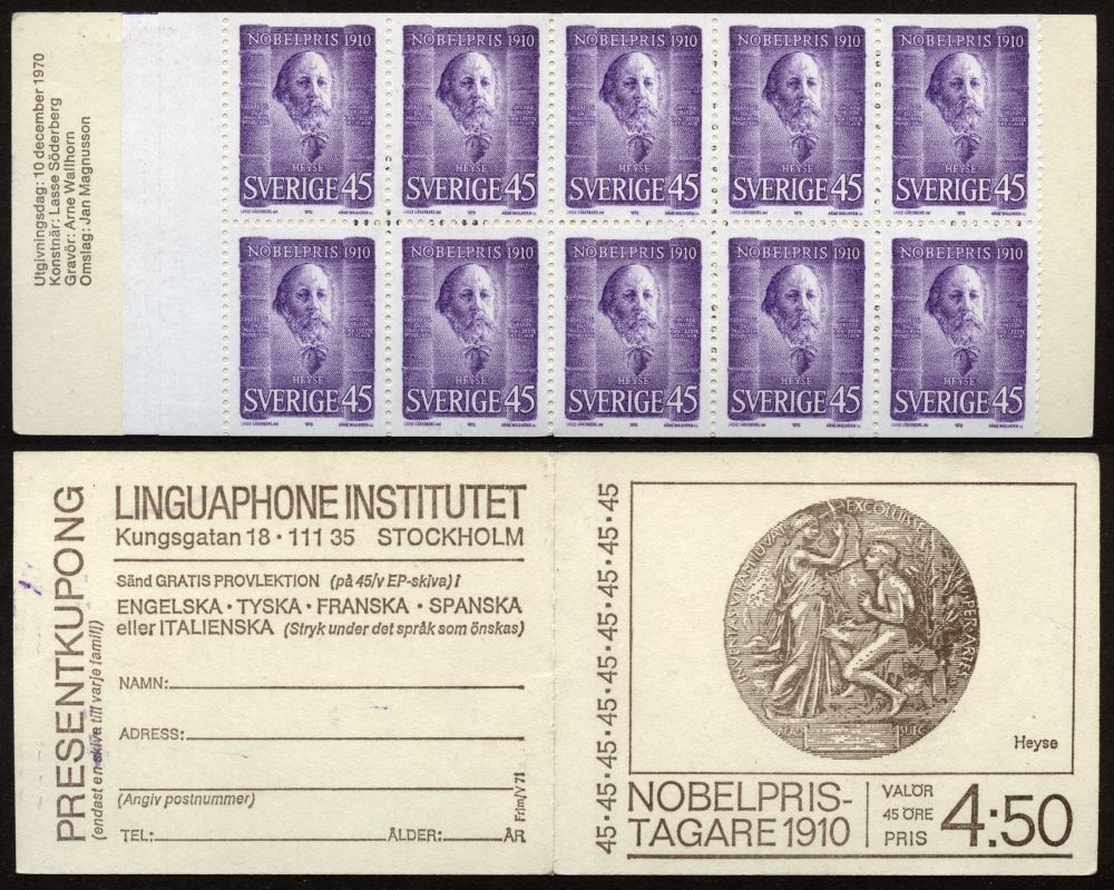 Sverige 1970 - Nobelpristagare 1910, 45 öre, häfte |