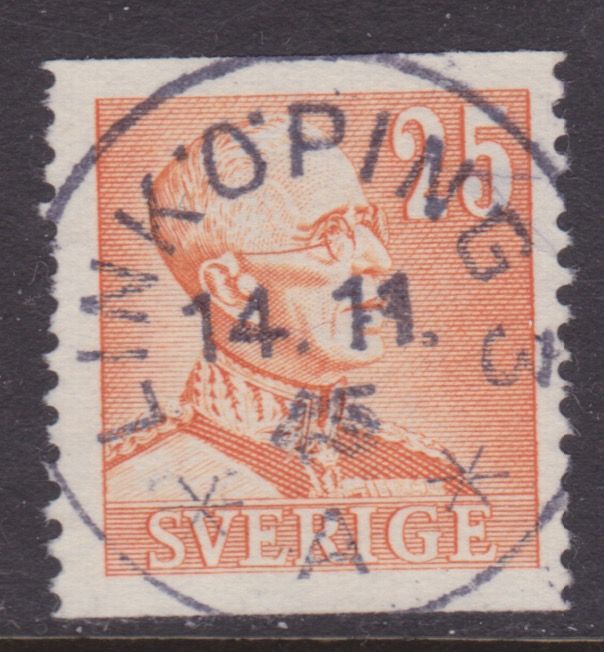 F277 25 öre Gustaf V profil höger, Linköping 3 14.11.45 * A vacker-prakt |