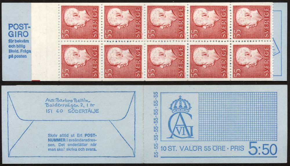 Sverige 1969 - Gustaf VI Adolf, 55 öre, häfte |