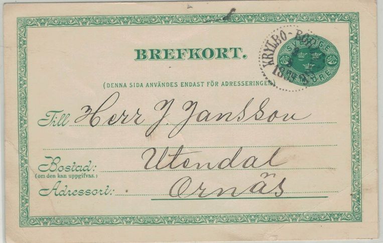 Krylbo-Borlänge NSt 14 på brevkort 3.5.1899 |
