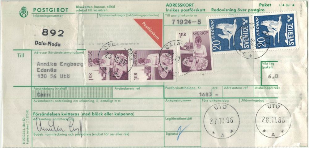 Dala-Floda NSt 61cC på paketavi 23.10.86 |