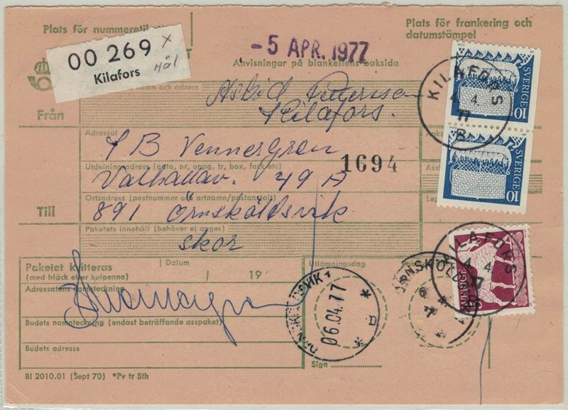 Kilafors NSt 59aB på paketavi 4.4.77 (Häftesblock baksidan) |