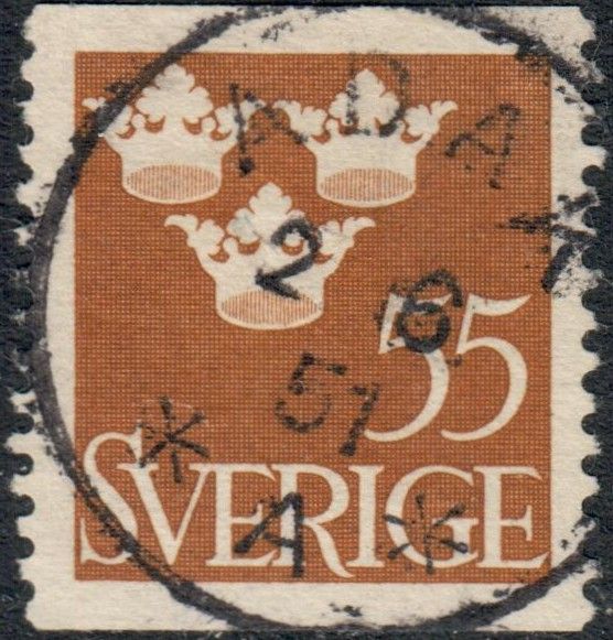 55 öre Tre kronor ADAK 1951-06-02 praktstämpel. (Nst 59c A)Porto tillkommer med 22 kr.