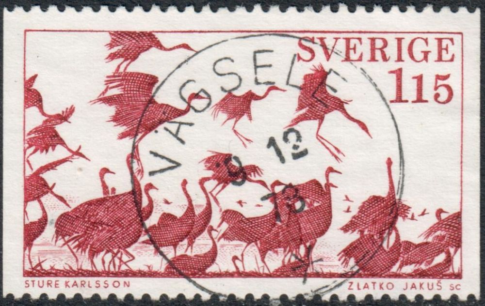 115 öre Tranor vid Hornborgasjön VÄGSELE 1978-12-09 praktstämpel (Nst 59b-2)Porto tillkommer med 22 kr.