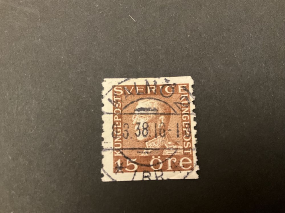 Gustaf V profil vänster facit 178 A lyxstämplat MALMÖ 2 8.3.38 |