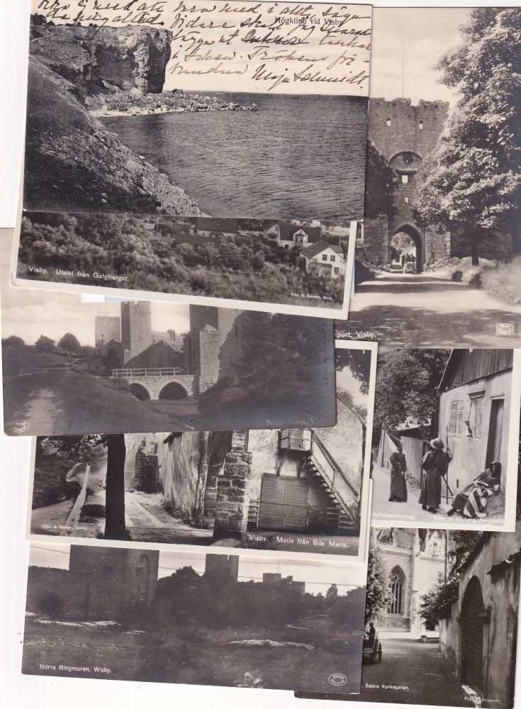 12 st, vykort Gotland Visby, Alla frankerade med LejonSe texttillägg |