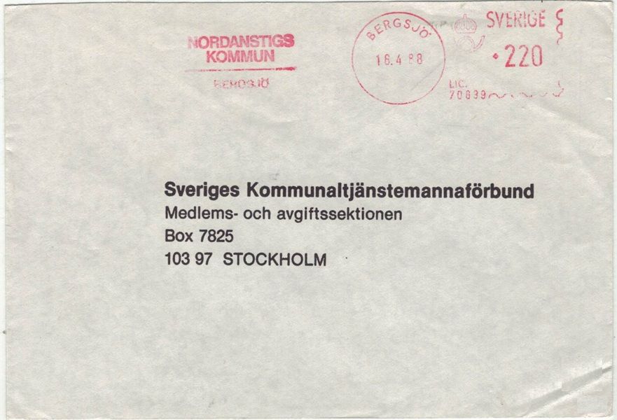 Bergsjö francostpl Nordanstigs kommun på brev 18.4.88 |
