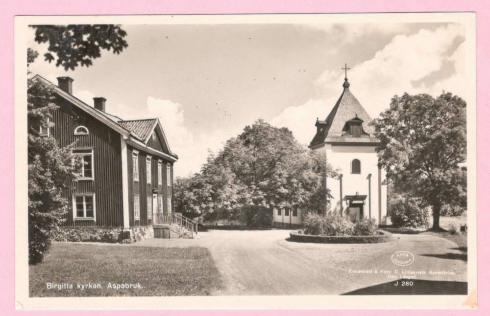 Aspabruk Birgitta kyrka Västergötland vykort A4318 |