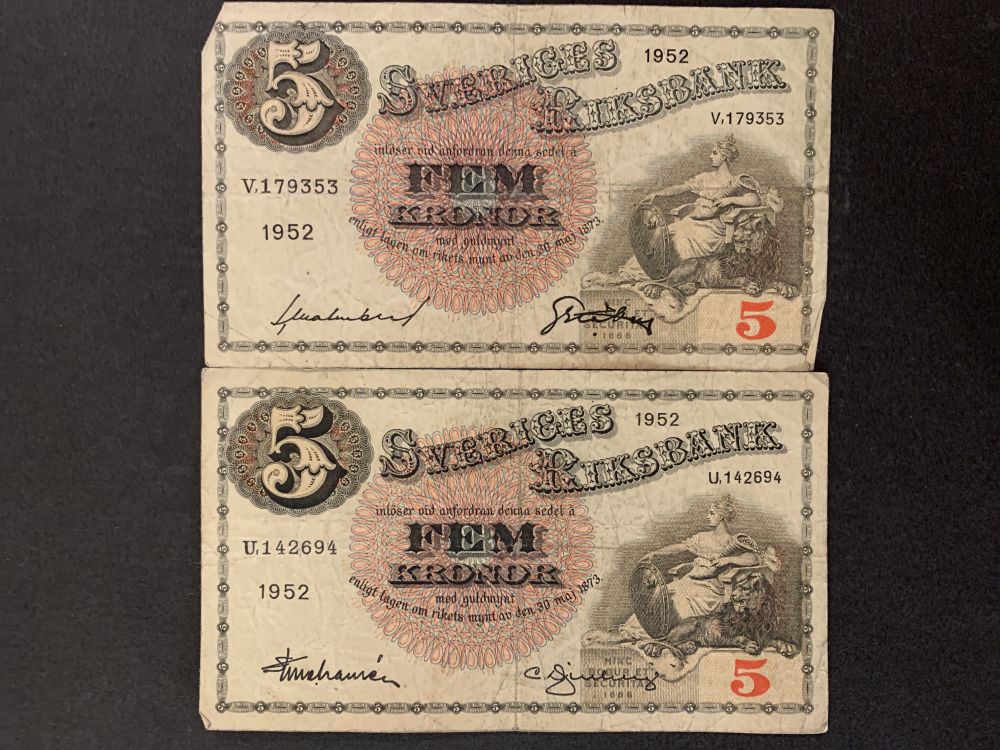 Sverige 5kr 1952 - TVÅ OLIKA |