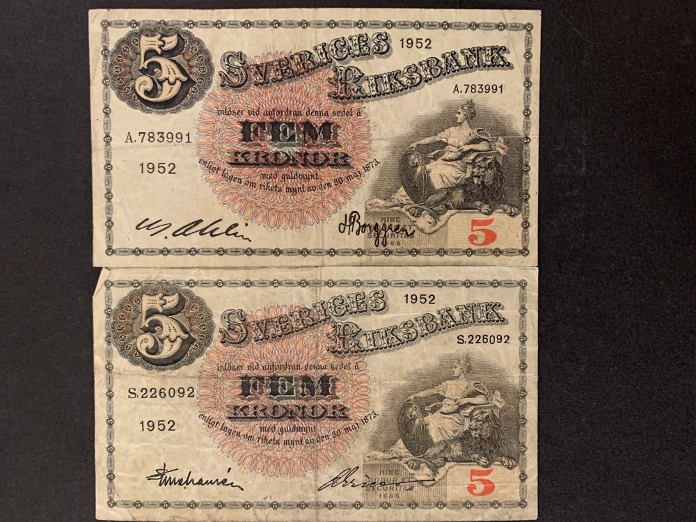 Sverige 5kr 1952 - TVÅ OLIKA |