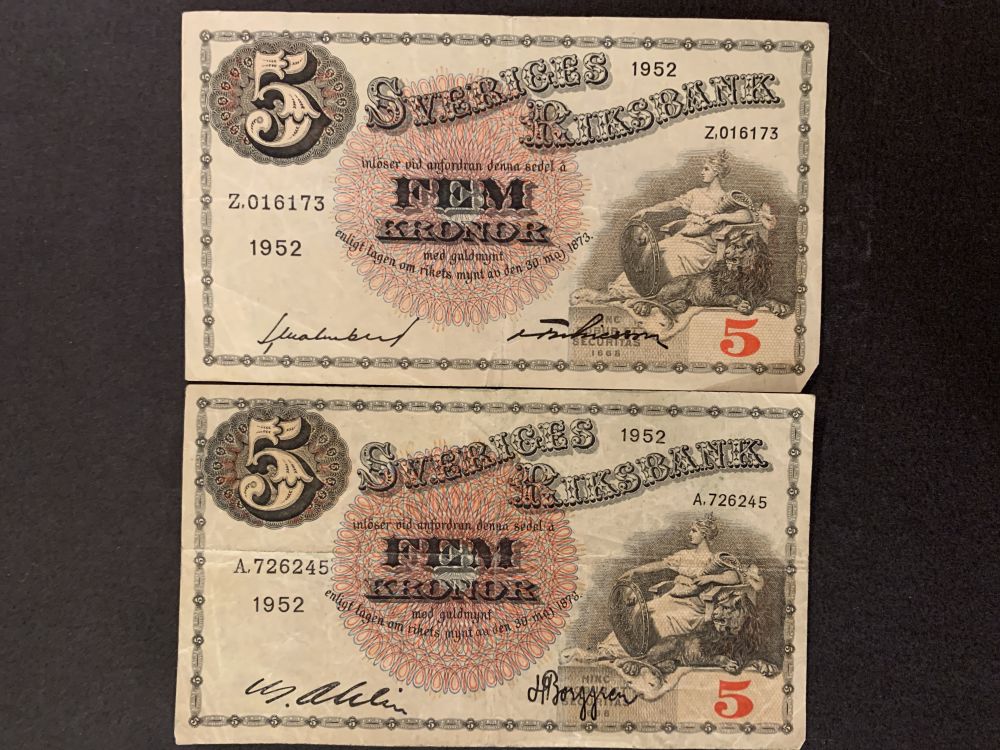 Sverige 5kr 1952 - TVÅ OLIKA |