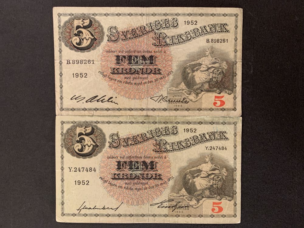 Sverige 5kr 1952 - TVÅ OLIKA |