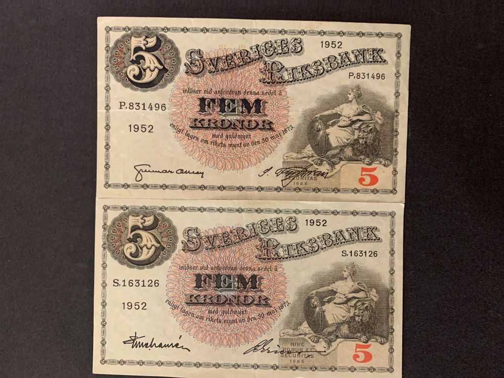 Sverige 5kr 1952 - TVÅ OLIKA |