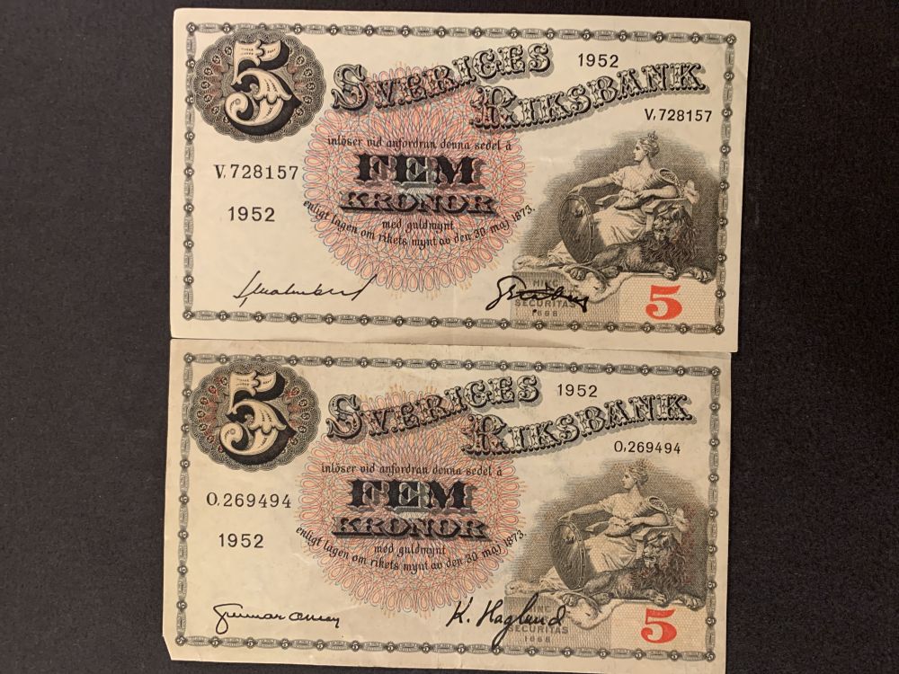 Sverige 5kr 1952 - TVÅ OLIKA |