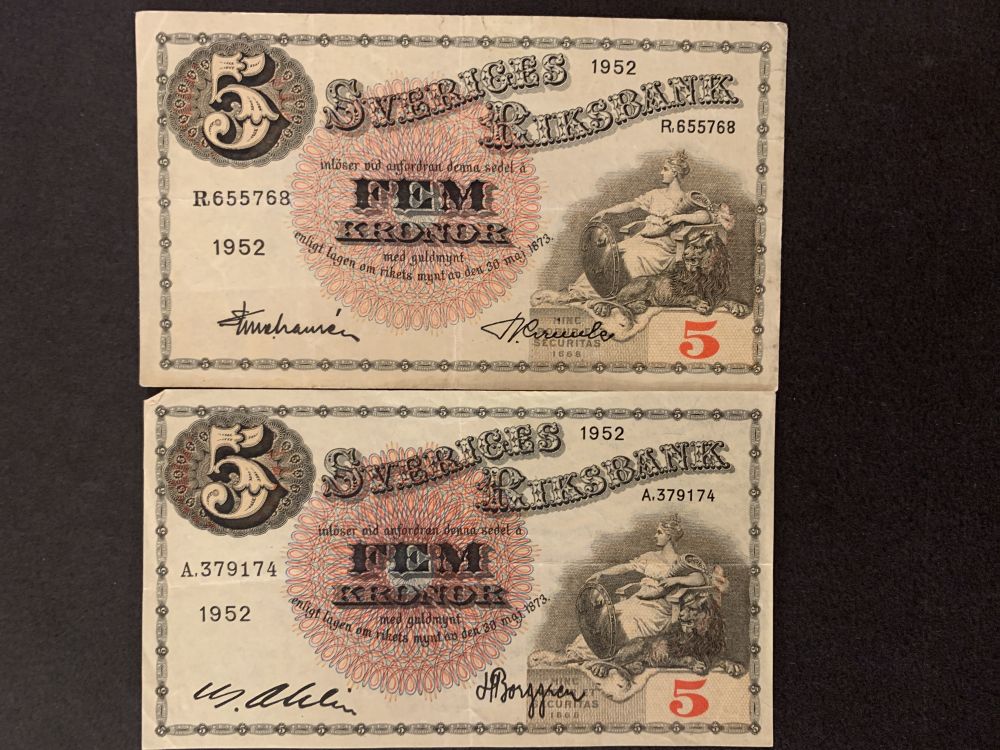 Sverige 5kr 1952 - TVÅ OLIKA |