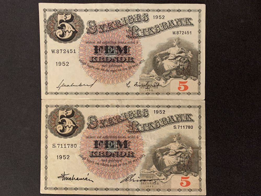 Sverige 5kr 1952 - TVÅ OLIKA |
