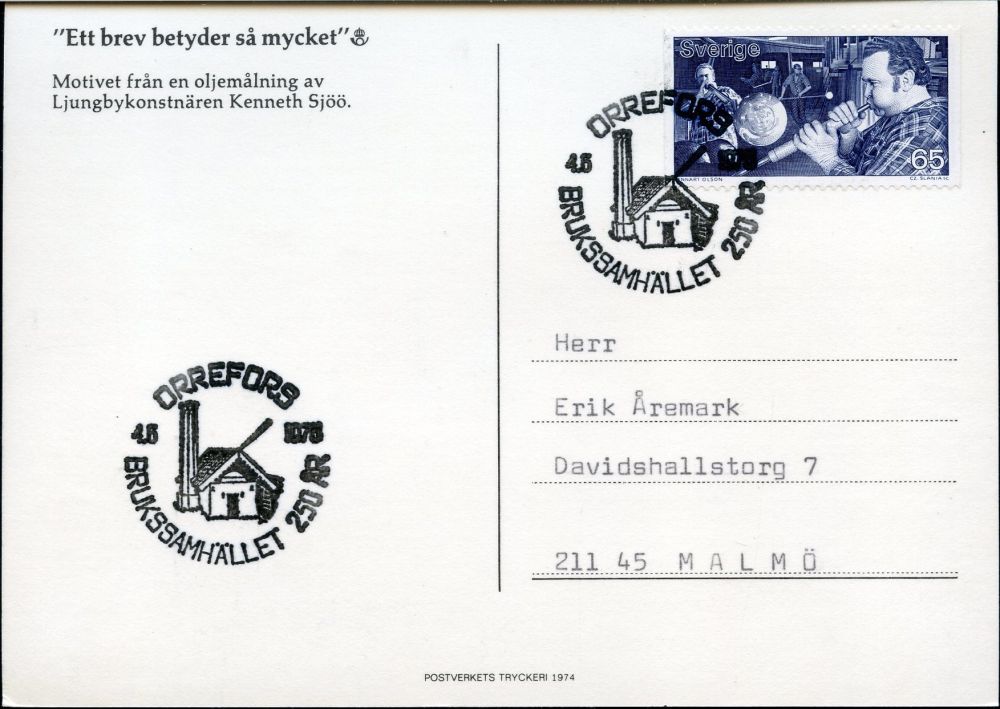 ORREFORS 4.6.1976. Brukssamhället 250 år. Gnistugn |