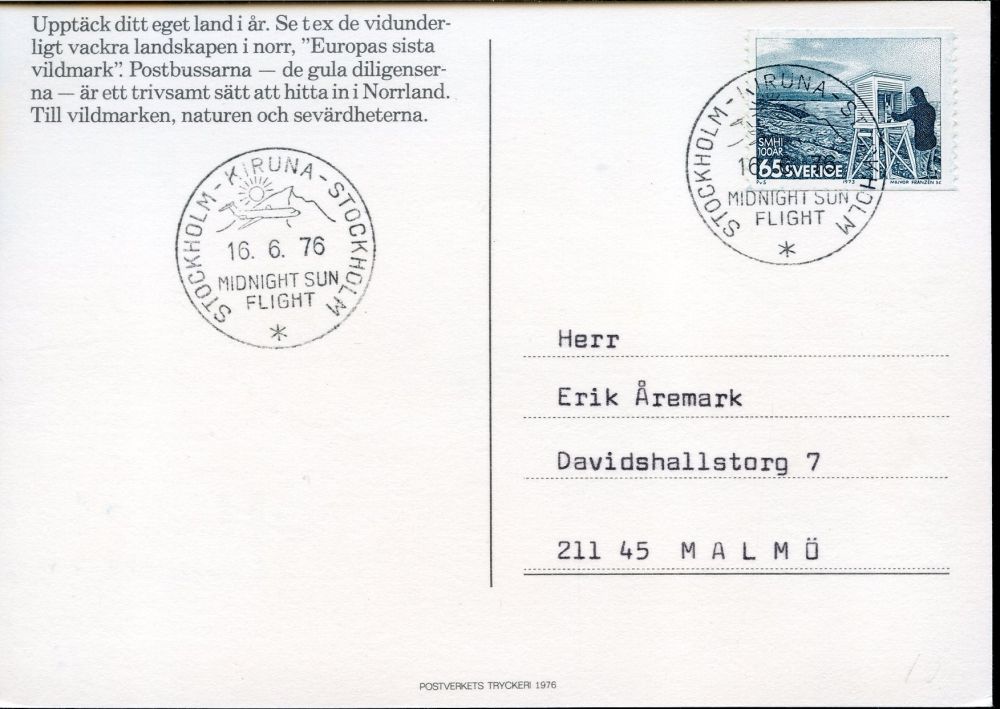 STOCKHOLM-KIRUNA-STOCKHOLM 16.6.1976. Midnight sun flight |