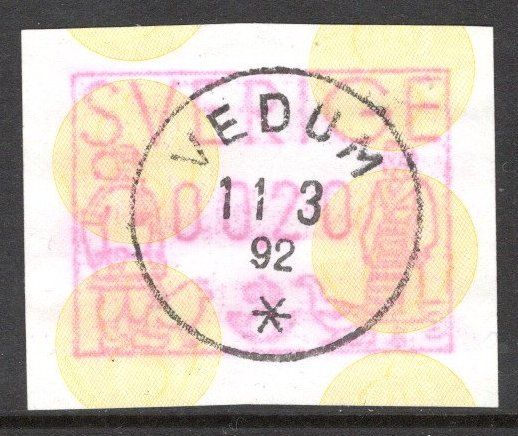 Frankeringsetikett EA 1e Vedum. 0.20 kr i LYX. R-län |