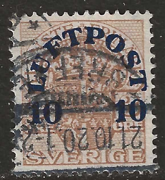 F136 10 öre på 3 öre Flygpostfrimärke stämplad |