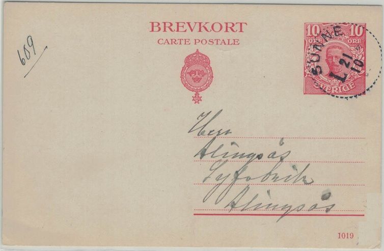 Sunne NSt 21 Lbr på brevkort 21.10.191x |