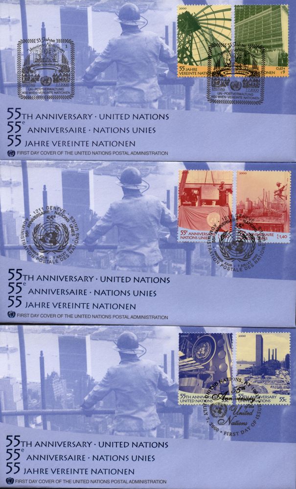 FN 2000 - 55 år av Förenta nationerna (FN): 50-årsjubileum av invigningen av FN:s högkvarter i New York, FDC |